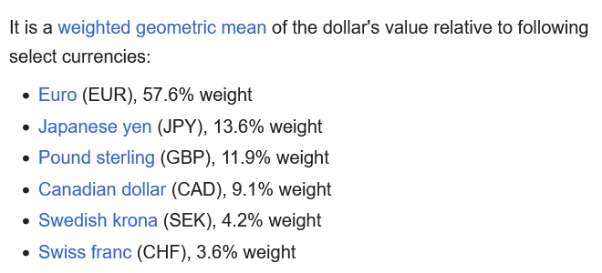 Let me explan: if dxy reading is 110 then the US Dollar is stronger than major world currencies by 10%.