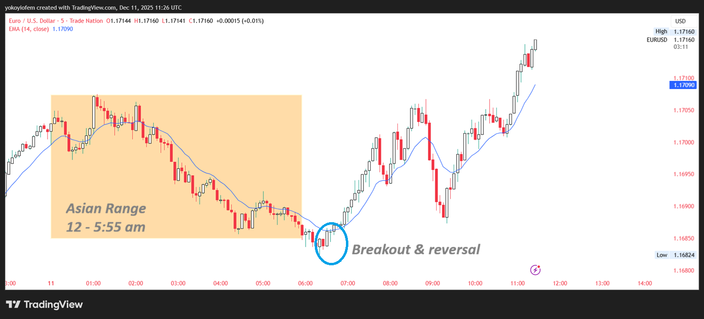 Today, Dec 5th 2025, our eurusd breakout strategy worked again with the reversal happening around 1.16700 during the Frankfurt hour (7-8 am UTC)