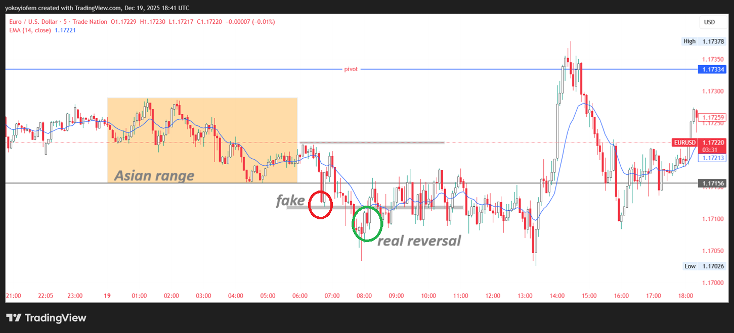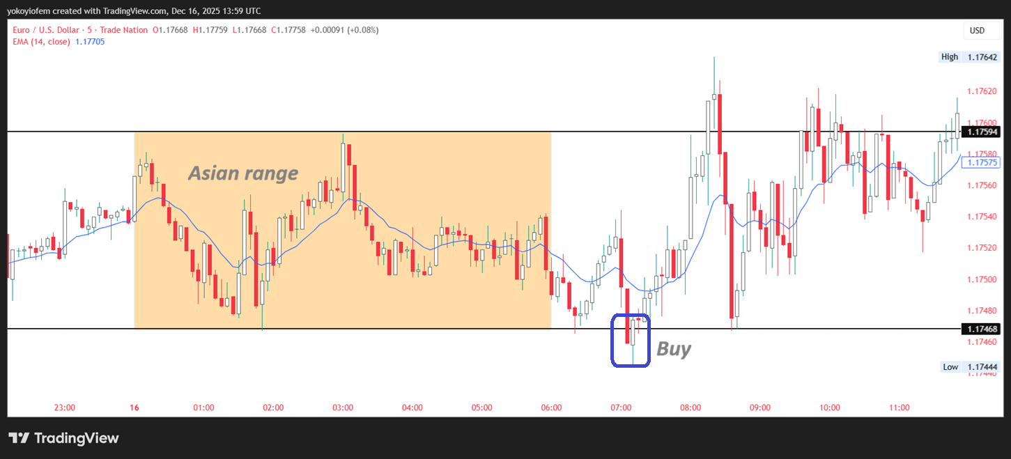 Today 16/12/2025 there was a breakout below the Asian range, folowed by a reversal to the upward direction. This was a buy opportunity for anyone who traded today.