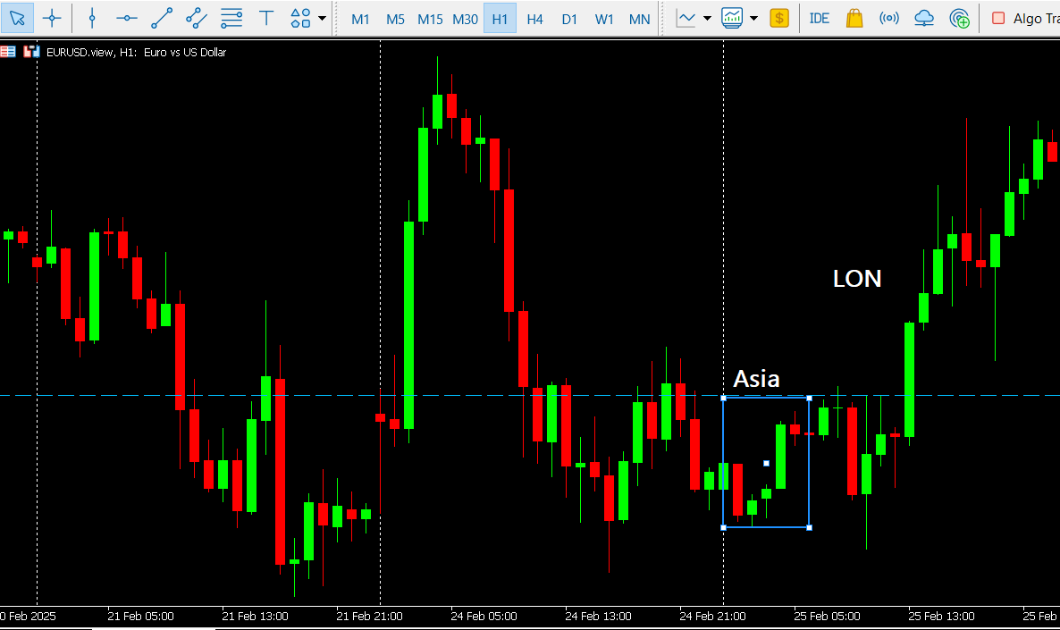 I use this simple breakout strategy to trade the London session. I simply mark the high/low of the Asian session on a H1 chart and wait for a breakout during the London session then trade the break.