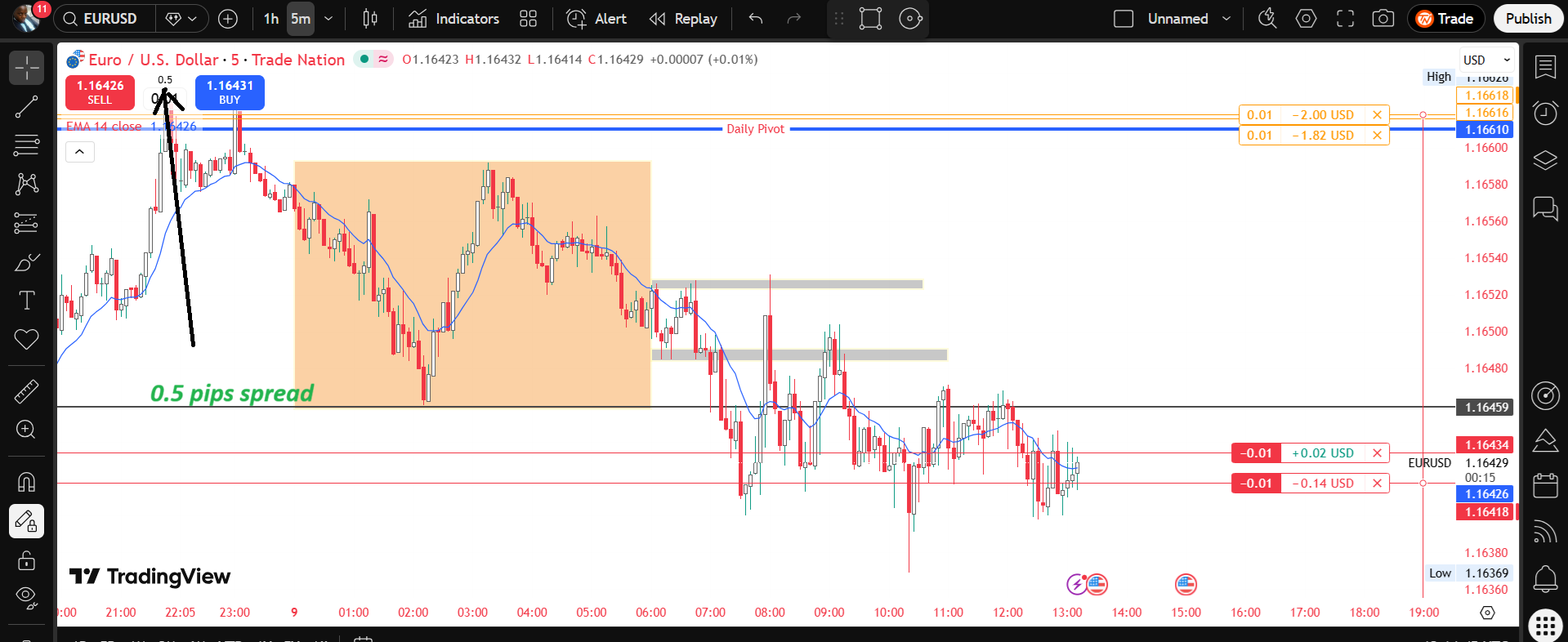 In the attached image I have opened a two short trades on EUR/USD and I got in early (20 minutes before news release) so I got low spread of 0.5 pips.