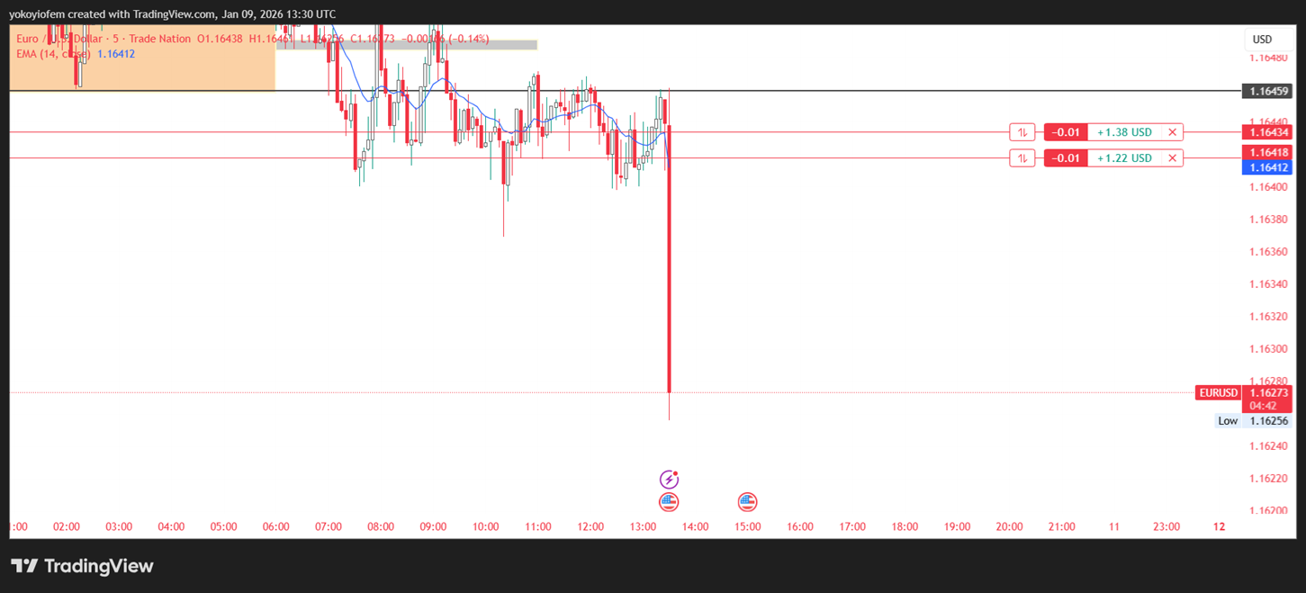 Why did I decide to go short? Well because yesterday, the US initial jobless claims report was released and EUR/USD reacted by falling. So, the jobless claim is related to NFP hence I expect the same reaction of falling price.