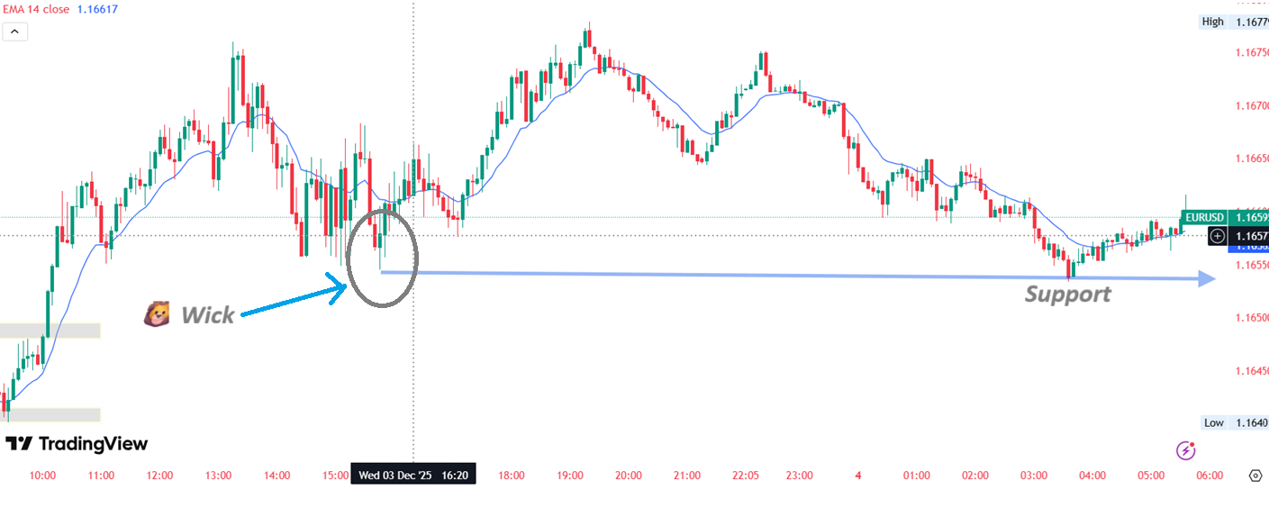 This morning I spotted another wick at price level 1.16546 which is acting as support preventing price from dropping below it.