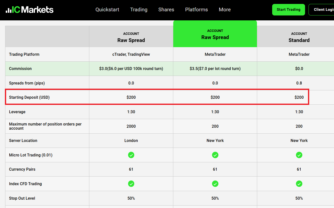 IC Markets has no minimum deposit requirement, you can deposit as little as $1. IC Markets only recommends you start with $200 but you are free to deposit any amount you have.