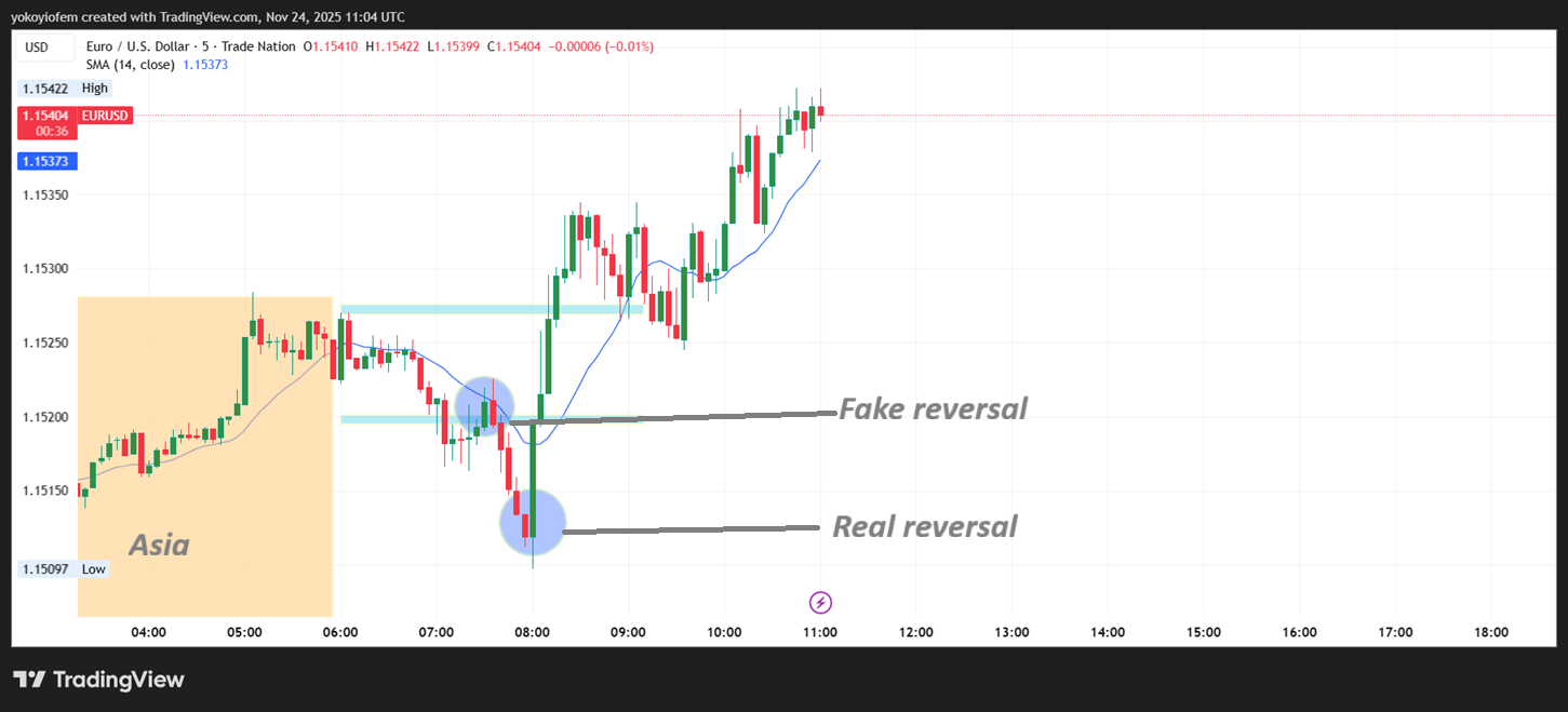 Today, the reversal occured late, during London. There was an initial fake reversal, followed by the real reversal.