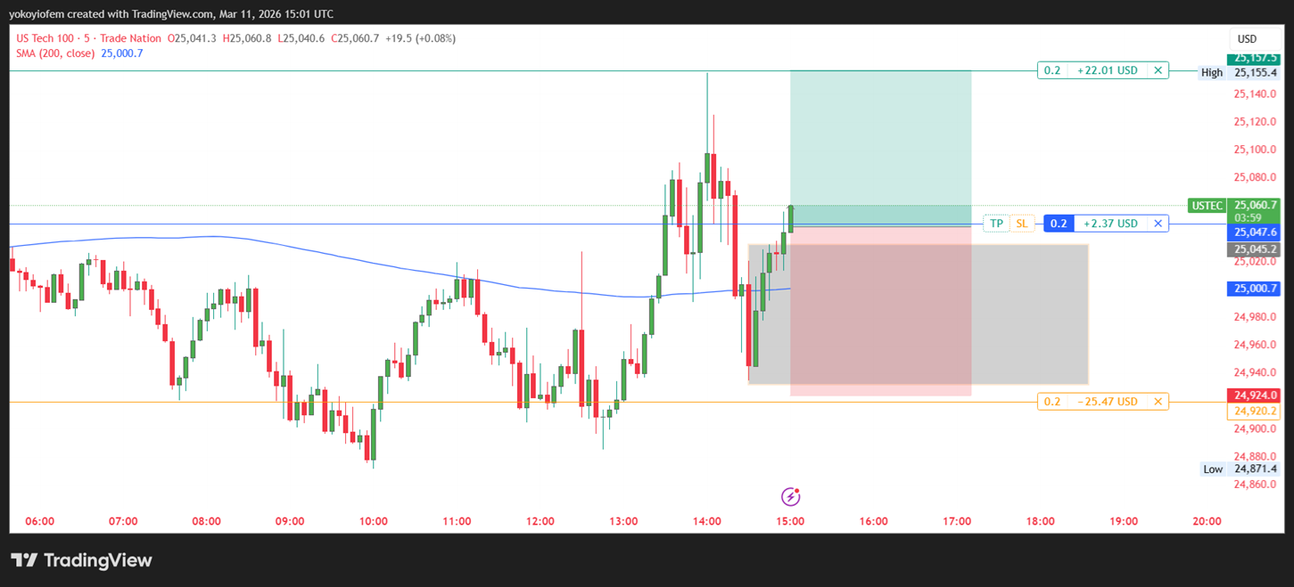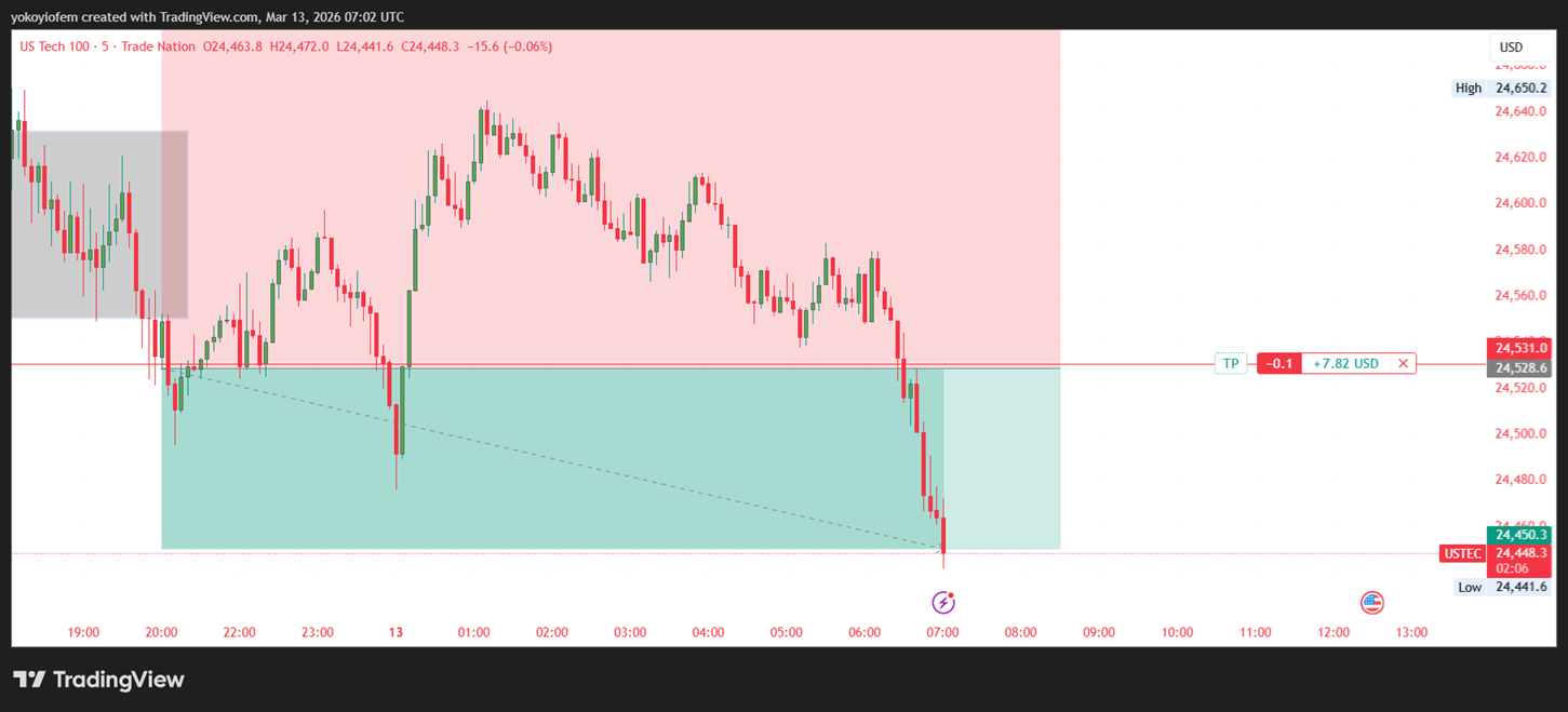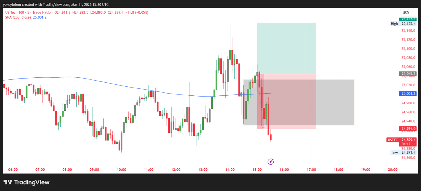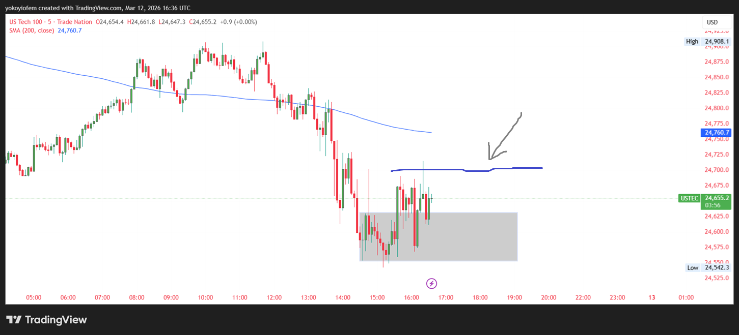 The Nasdaq stock exchange opened by 9 30 am in the US (equivalent to 3:30 pm in NG) so I waited for 15-minutes to mark the 15-min range. Now I will wait for price to breakout & close outside the range then i trade accordingly.