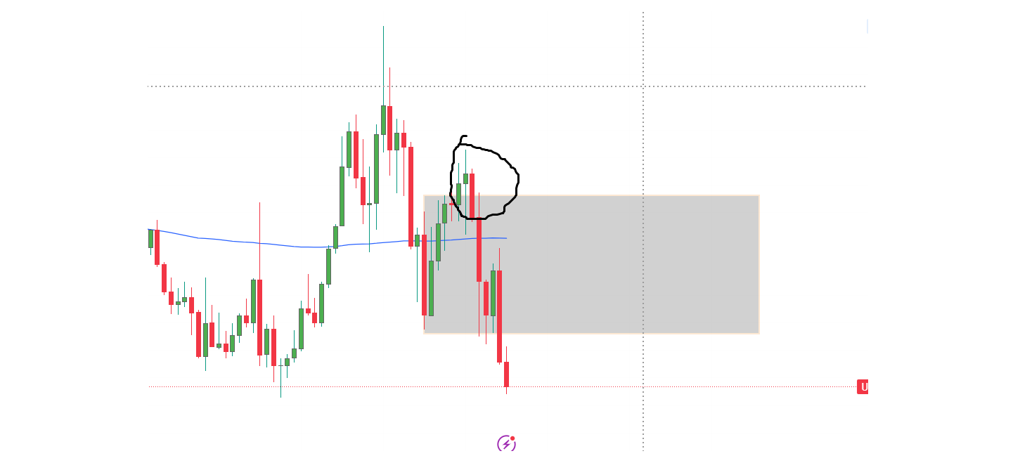 Price broke out of the upper 15-minute range but there was no real continuation for me to buy into. Instead price collapsed back into the 15-minute range but didnt collapse far enough for me to consider a sell. So now I am stuck in between. If I am to buy, I want to see price close above the blue line.
