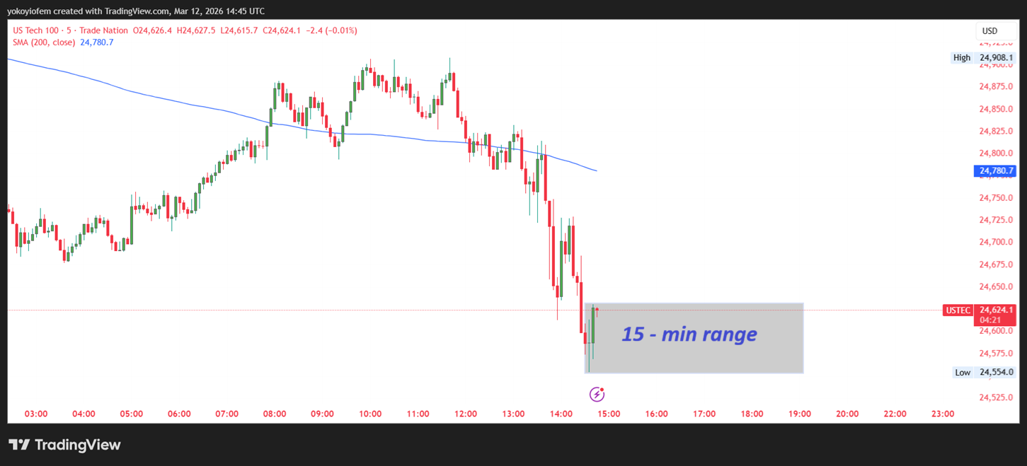 The Nasdaq stock exchange opens by 9 30 am in New York, so today I will be testing a 15-minute breakout strategy.