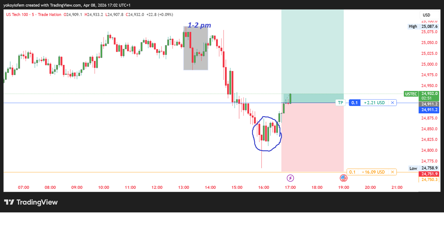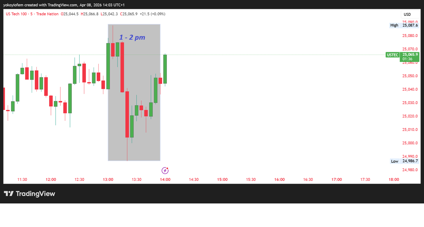 Welcome to the New York session, the Nasdaq stock exchange opened by 1:30 pm UTC+1 and I have marked out the 1-2 pm range to capture the start of the general NY session and the start of the Nasdaq open. I will now wait for price to break out of the range from either upward/downward direction before deciding on what to do