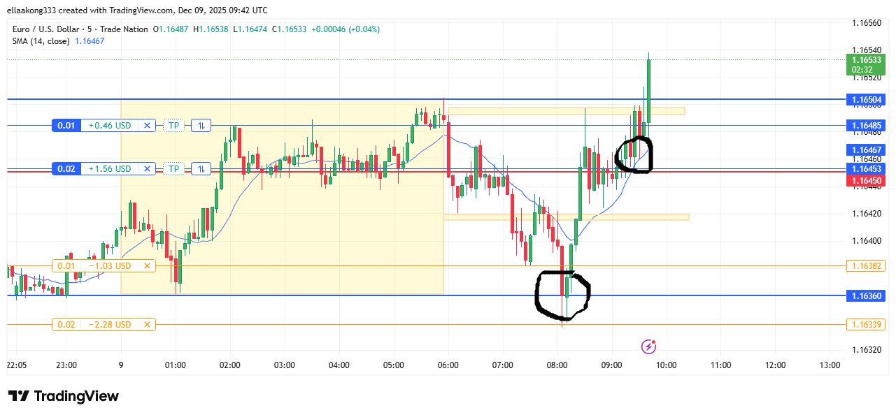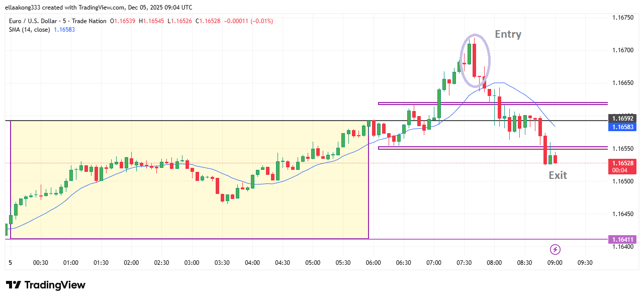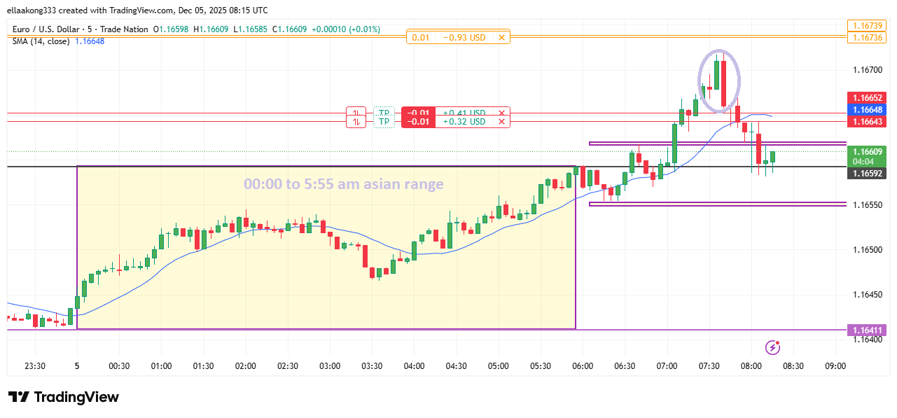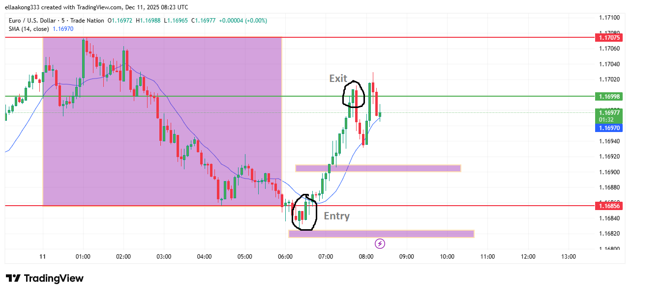 Today, 3rd December 2025, I followed the eurusd breakout strategy and i sold the first time but my stop loss was hit then i sold the second time and made a profit