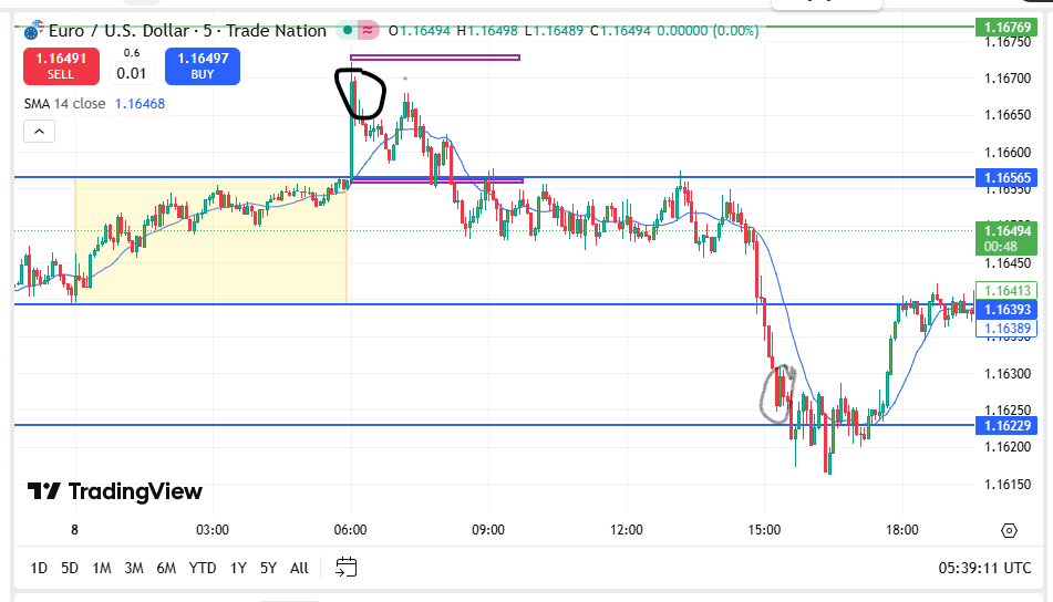 My first trade yesterday was a sell at 1,1663 after the break of the Asian high. i exited around 1.629 after price fell below the Asian low.