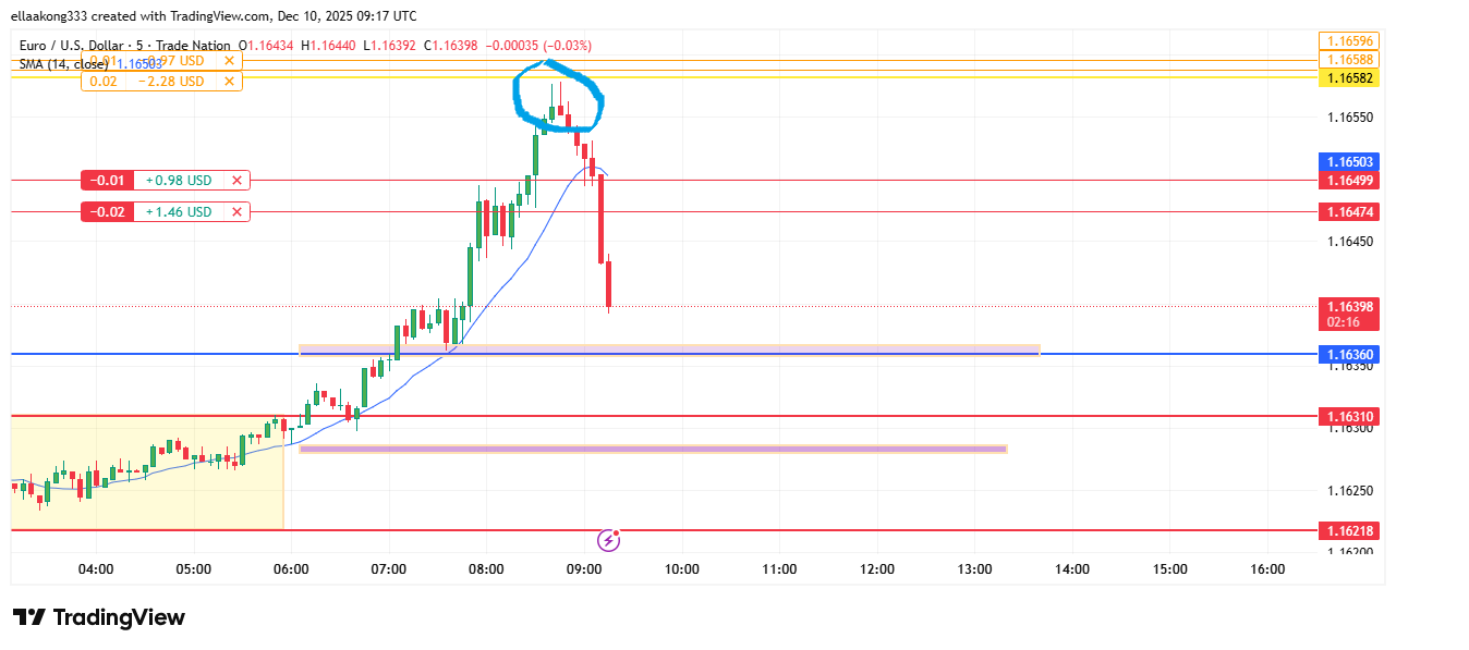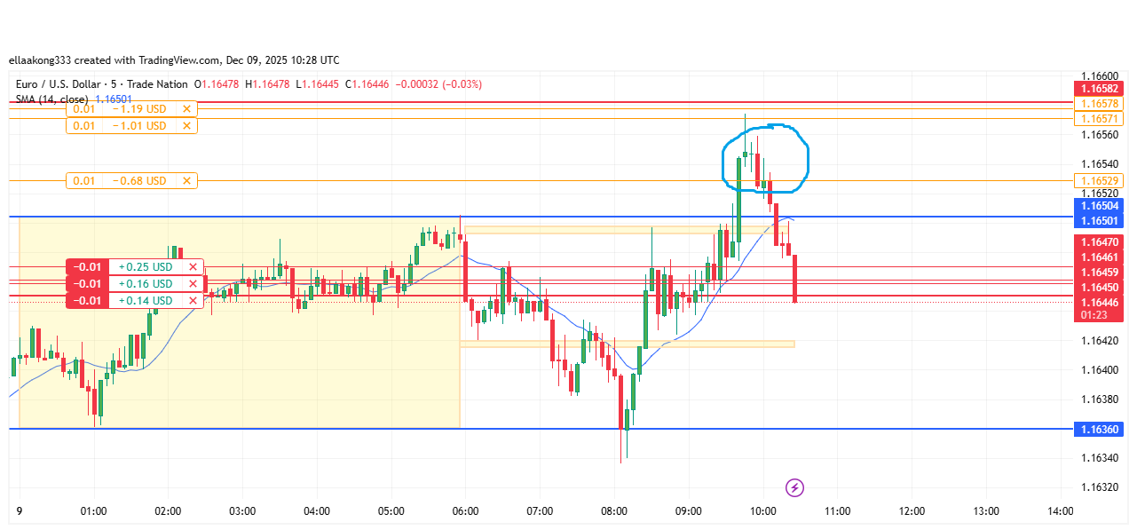 I just took some sell trades at 1.1647 and 1.1649. My stop loss on each trade is about 10 pips.