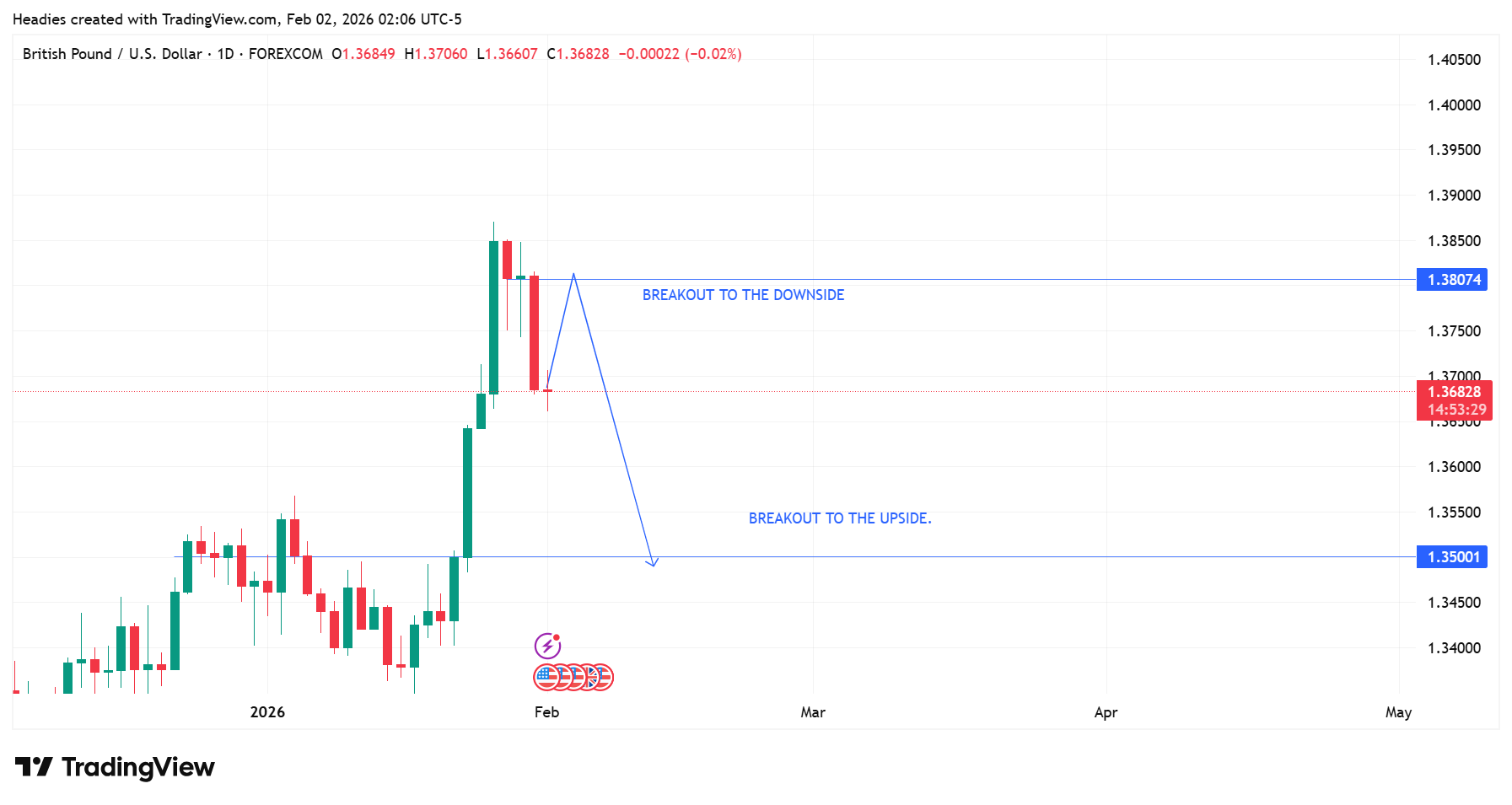 On the daily, GBP/USD is looking bearish but a close above the 867 level will mean bulls are back in control.