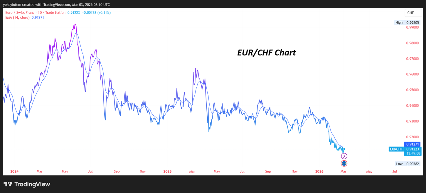 Since the begining of 2026, the US Dollar has been on the weak side, while the Swiss Franc had been the go-to currency for safe haven investors. A look at the US Dollar index chart from January 2026 till date will show you that with the start of the US/Iran conflict, the US Dollar has started gaining strength.