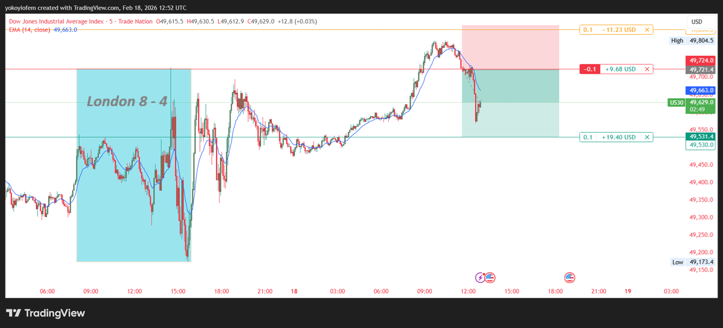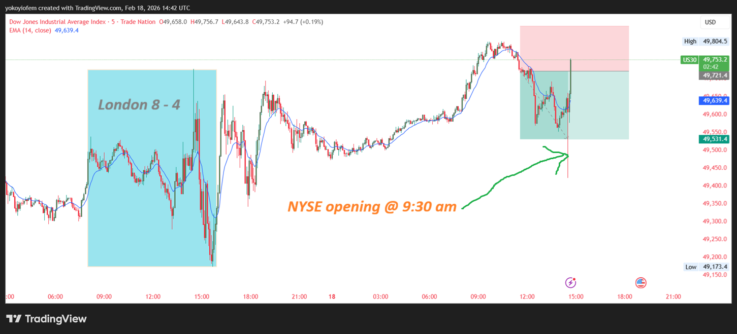 This is how the US30 market reacted on the Monday after news of US attacking Iran broke. The London session was calm and kind of Bullish but when New York opened us30 points started falling. A sell would have been a good trade.