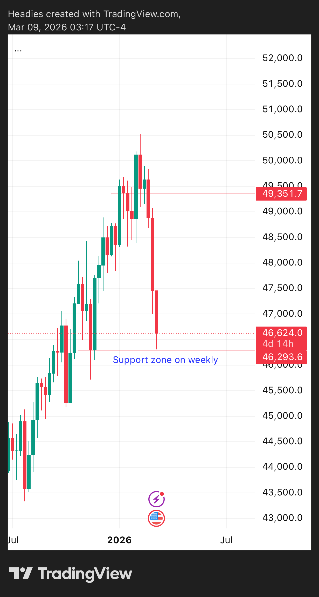 US30 looks bearish but there’s a strong support zone on the weekly timeframe that price can use to go up. I will be watching price reaction at that zone.