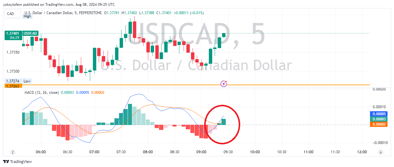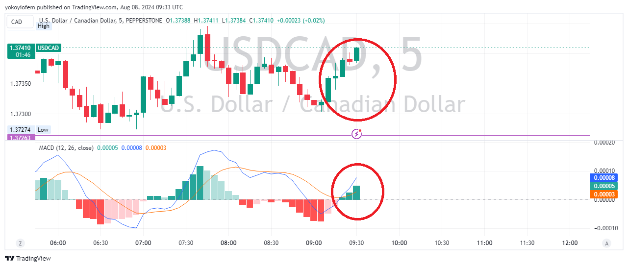 For today, im trading the USD/CAD long position with the help of the MACD indicator.
