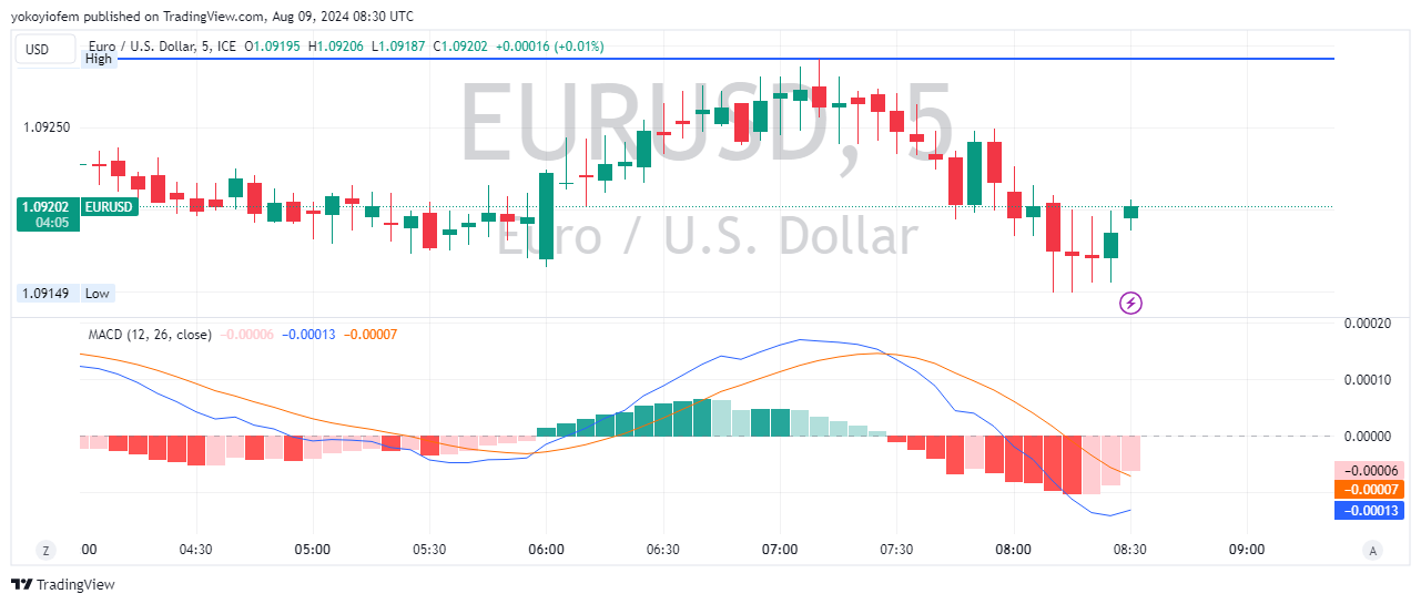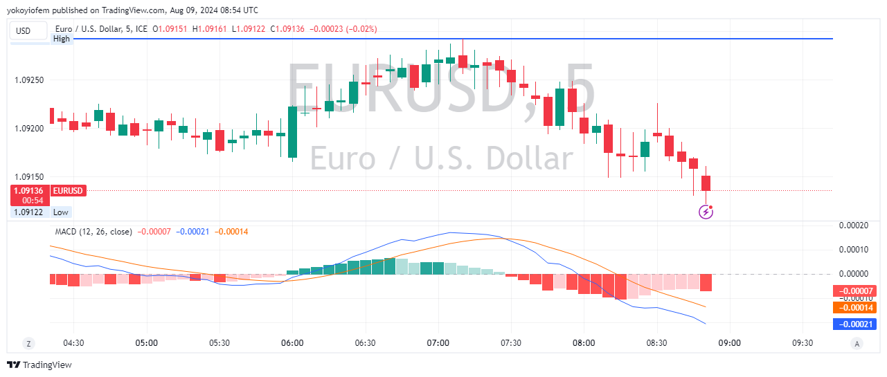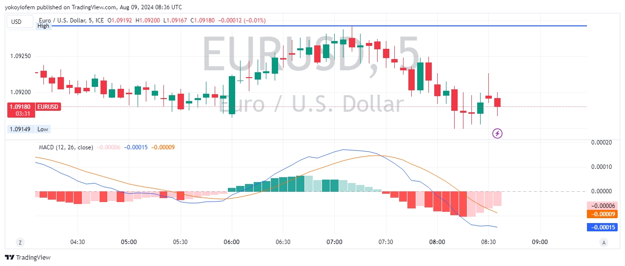 Currently USD/CAD is facing downward pressure but the MACD indicates upward pressure may be coming because the blue line is about to cross the orange line from beneath it.