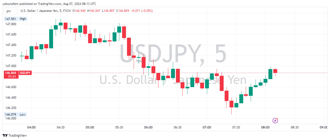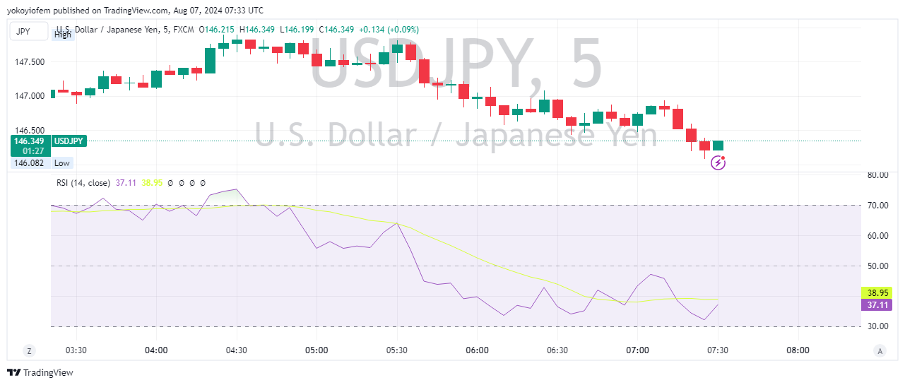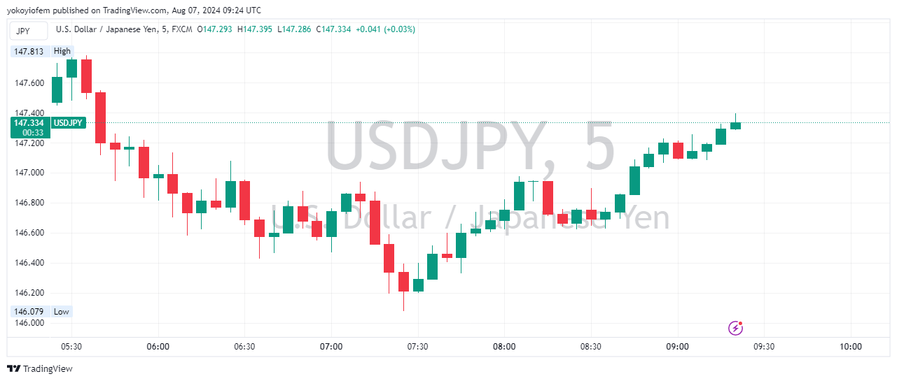 The Yen has been appreciating against the US Dollar lately due to US recession fears caused by disappointing job reports in the US (unemployment up by 4.3%)