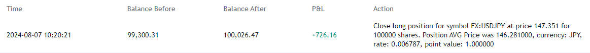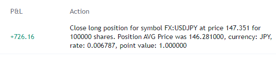 As predicted price has gotten to my Take Profit point of 147.35 and my Take Profit has been hit so i made a $726.16 profit.