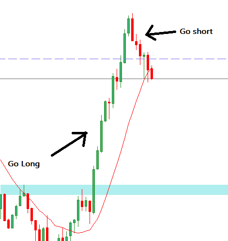 Going long means you think that the price of an instrument will rise upwards, so you are buying low at the current price in order to sell at a higher price and exit the market with your profit. When price is increasing, the candles on the chart appear taller and taller hence the word "long" is used.