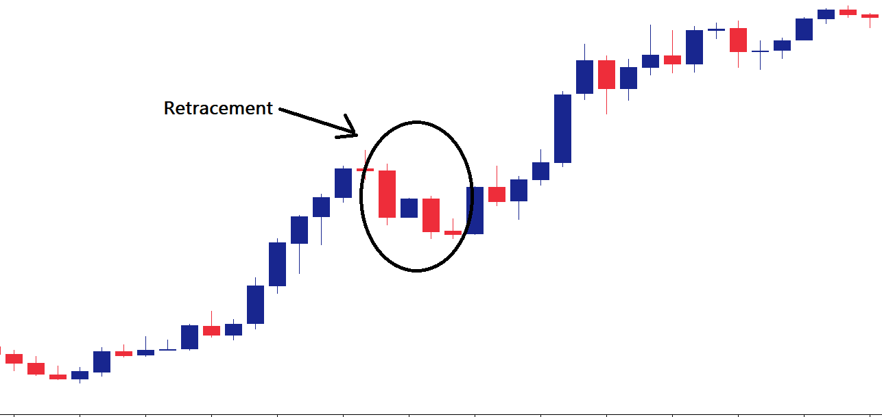 Whenever there is an upward or downward trend and people start taking profit & exiting the market, you will see a temporary trend reversal which is called a retracement. It is temporary and does not nullify the trend because after these traders exit with their profits, the trend will continue. Lots of beginner traders confuse retracements for actual trend reversals and exit their positions only for the trend to resume afterwards.