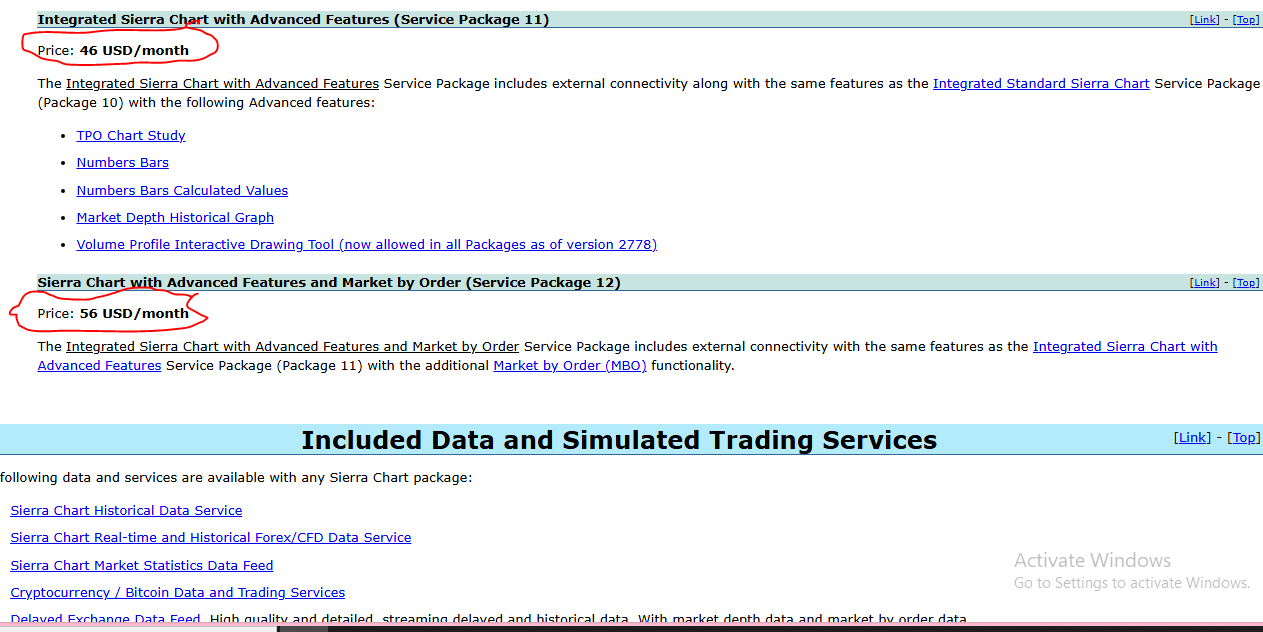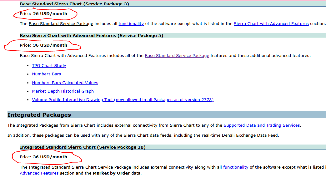 Sierra chart price is $26 per month for the base package. The advanced packages cost $36, $46 and $56 per month depending on the contents of the package.