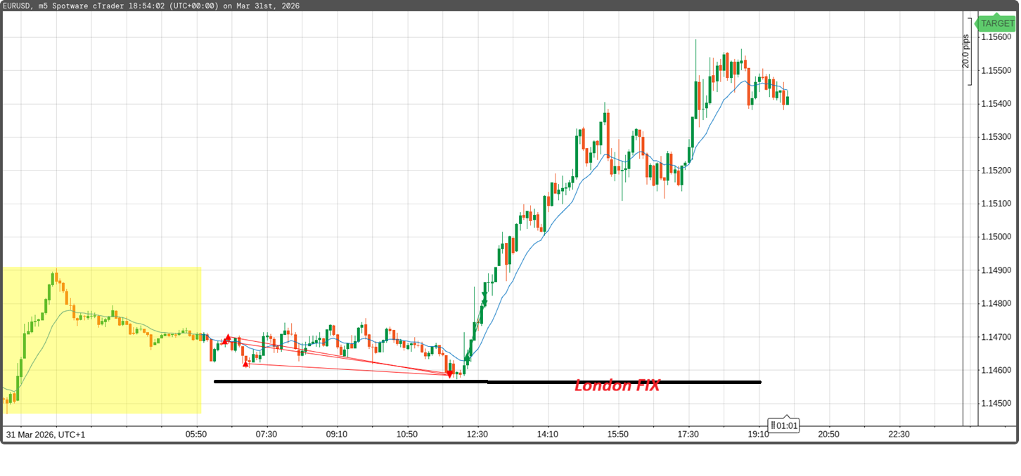 We are now in the NY session and EUR/USD price is still staying above yesterdays London FIX!