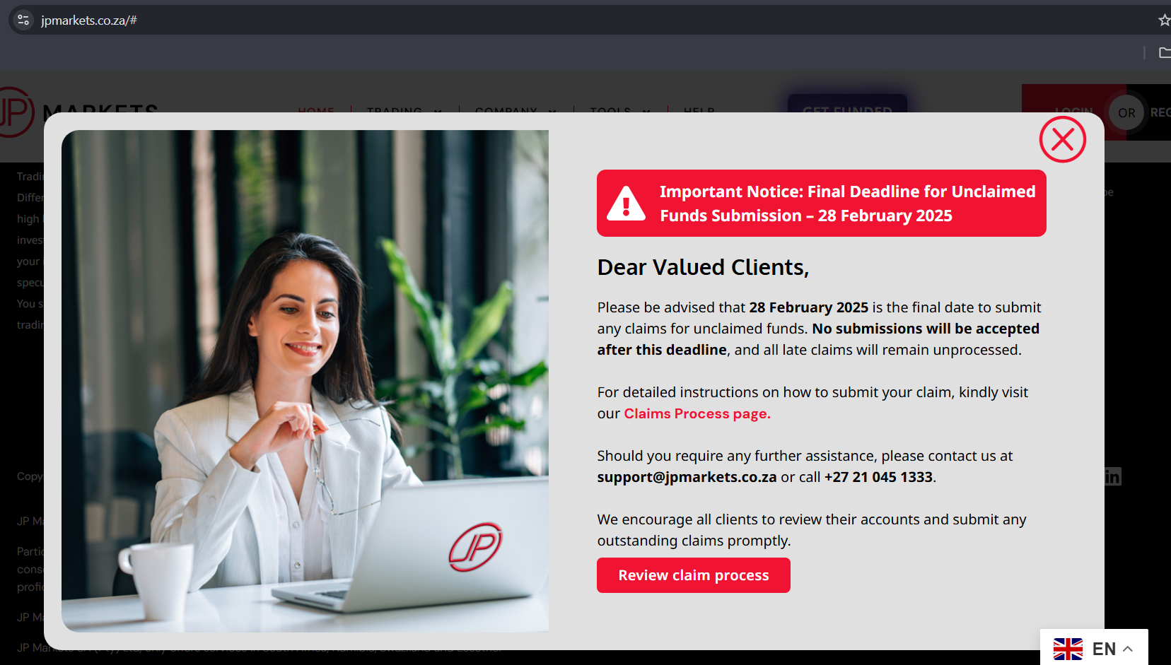 JP Markets have asked people contesting unclaimed funds submit their application to be paid. I don't know what's going on with JP Markets but why do people have to contest unclaimed funds? Well, tread with caution with this broker is all I would say.