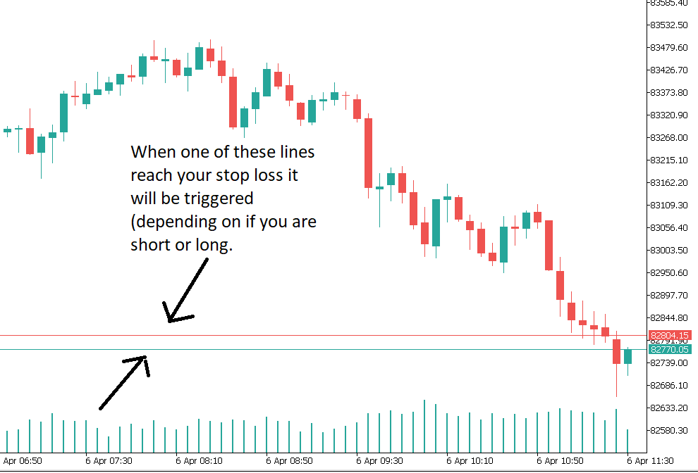 Always watch out for when these lines approach your stop loss price, example if you are shorting the market your stop loss will be executed at the ask price so once the ask price line reaches your stop loss it will be triggered even if price hasnt reached there yet.