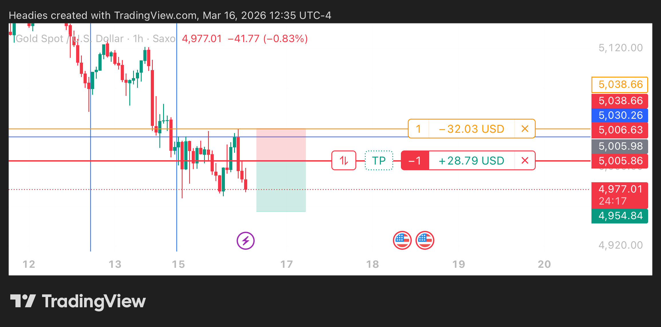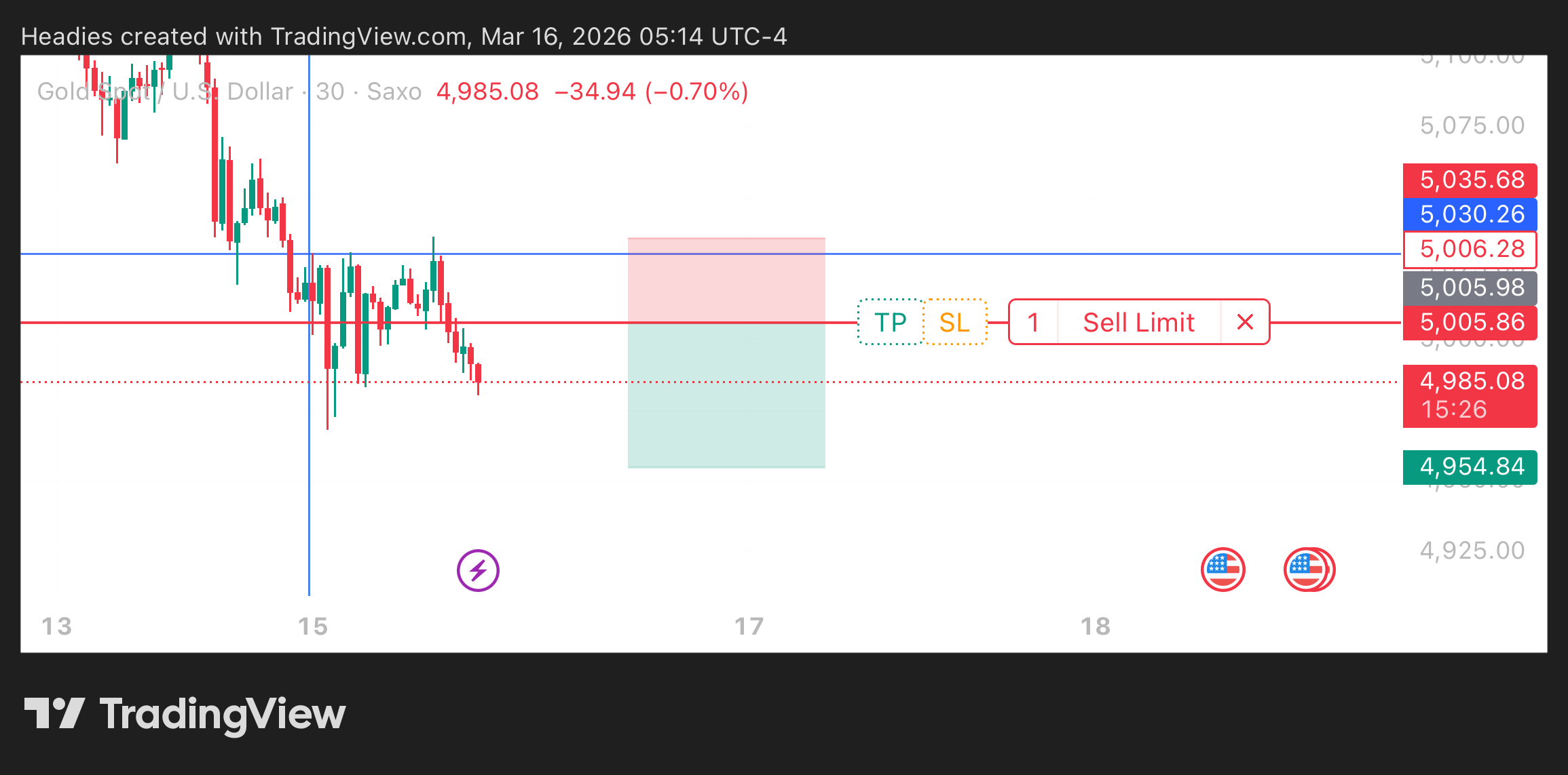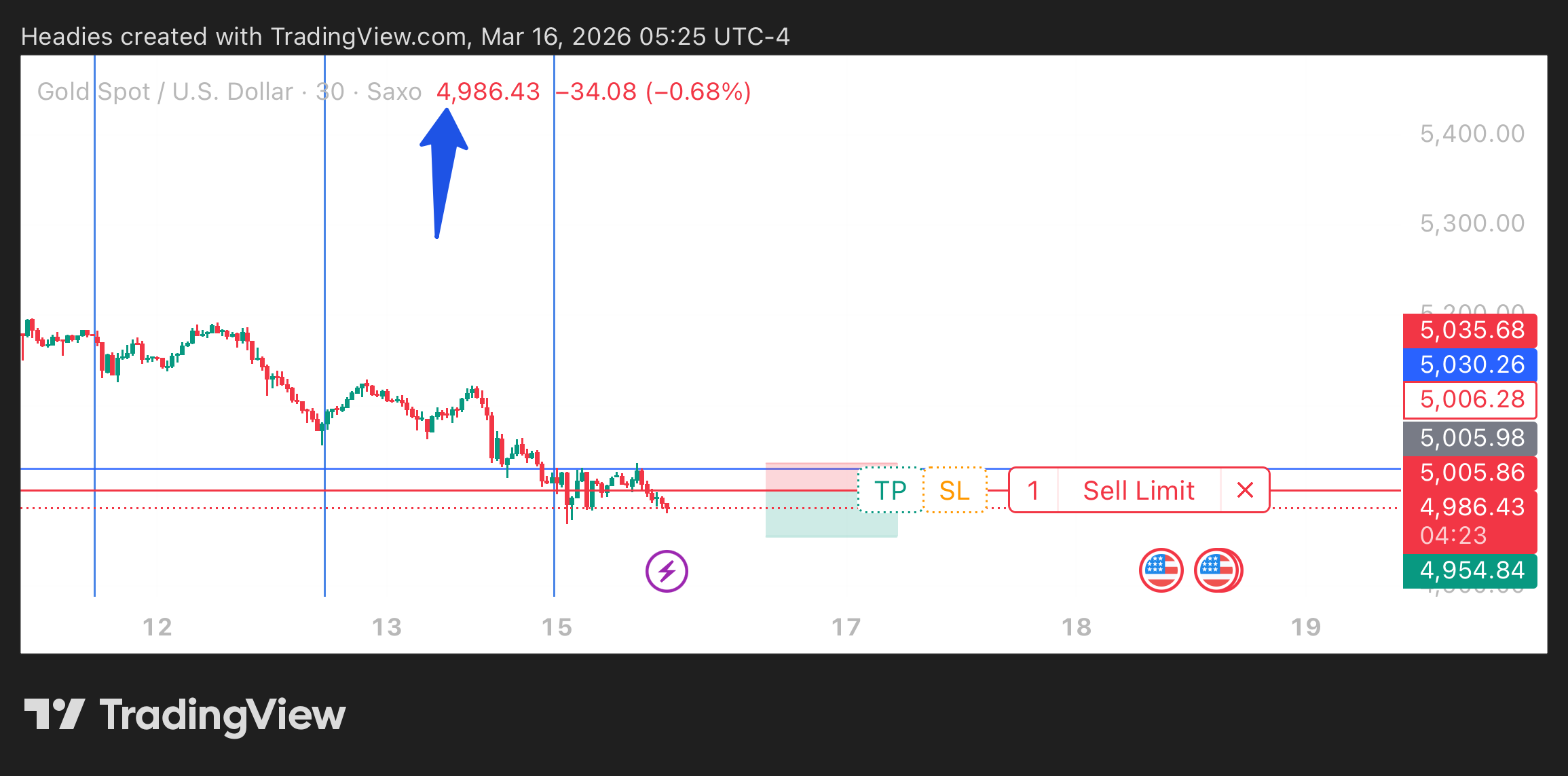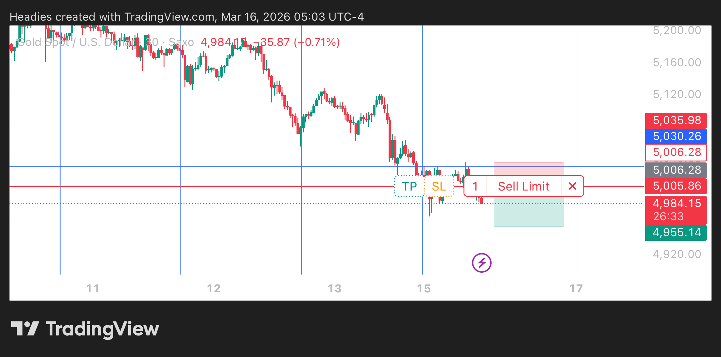 Well, my sell limit just got triggered. Gold is still bearish for me until daily timeframe proves otherwise.