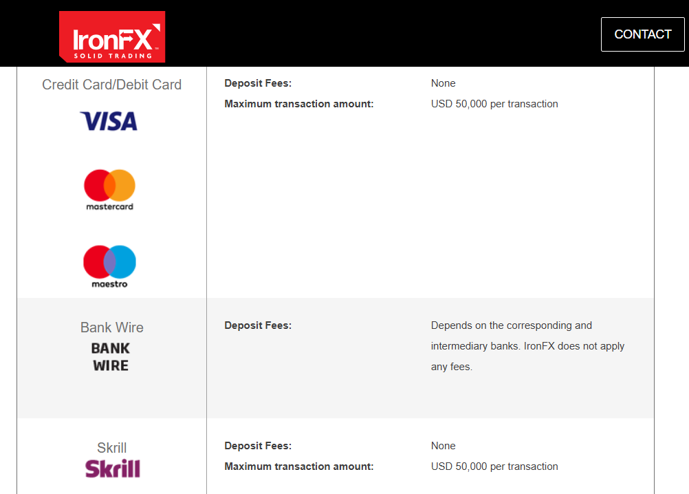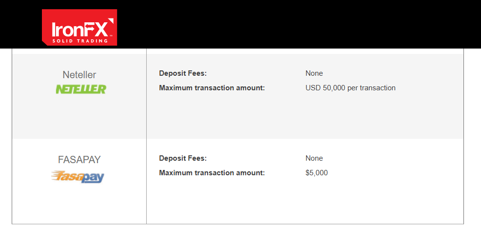 IronFX has approved the following deposit methods & warns that you should not use any deposit method apart from the ones listed below: