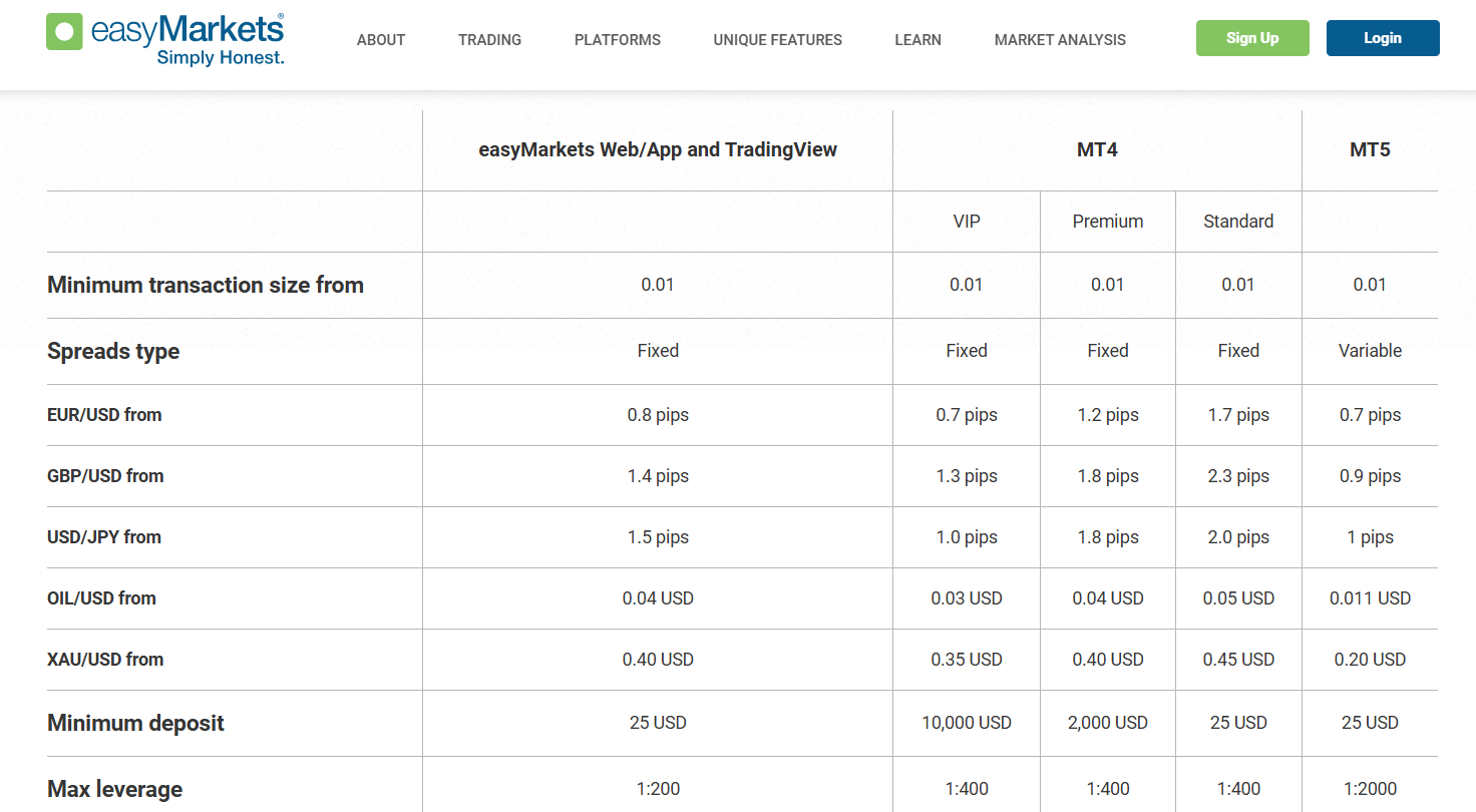 MT4 Accounts can access up to 1:400 in leverage, while Easy Markets/TradingView account users get up to 1:200 leverage.