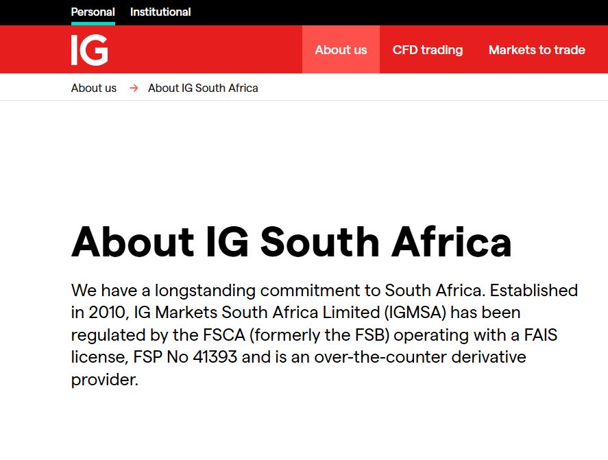 IG Markets is in South Africa legally, and has the approval of the FSCA to operate as both a Financial Service Provider (FSP) & an Over-the-counter Derivative Provider (ODP).